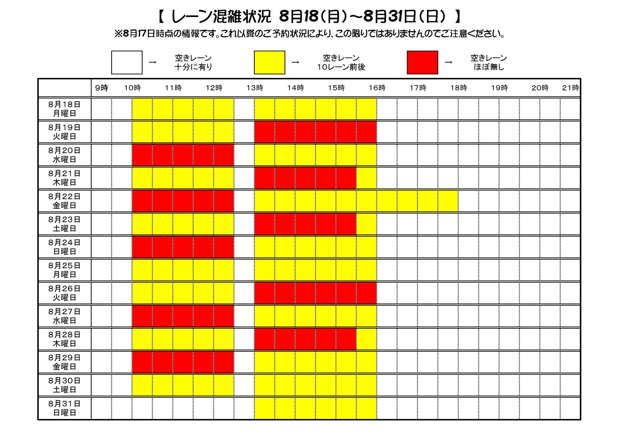 レーン状況8月31日まで