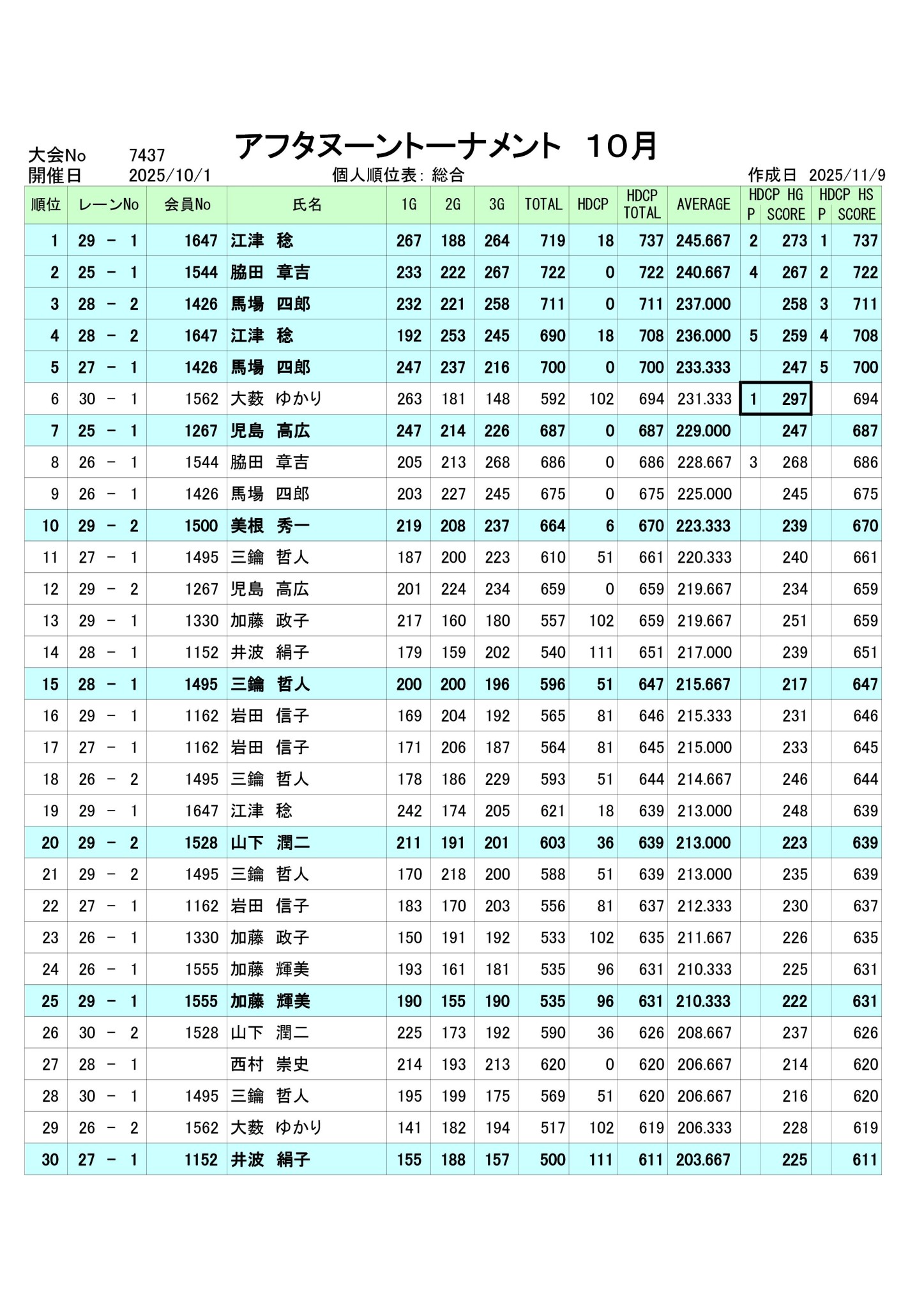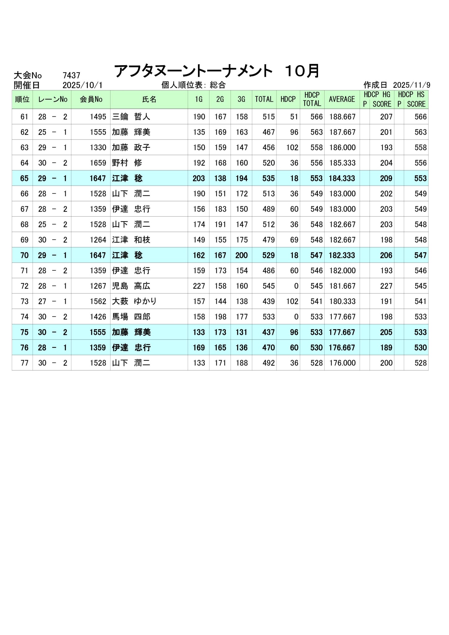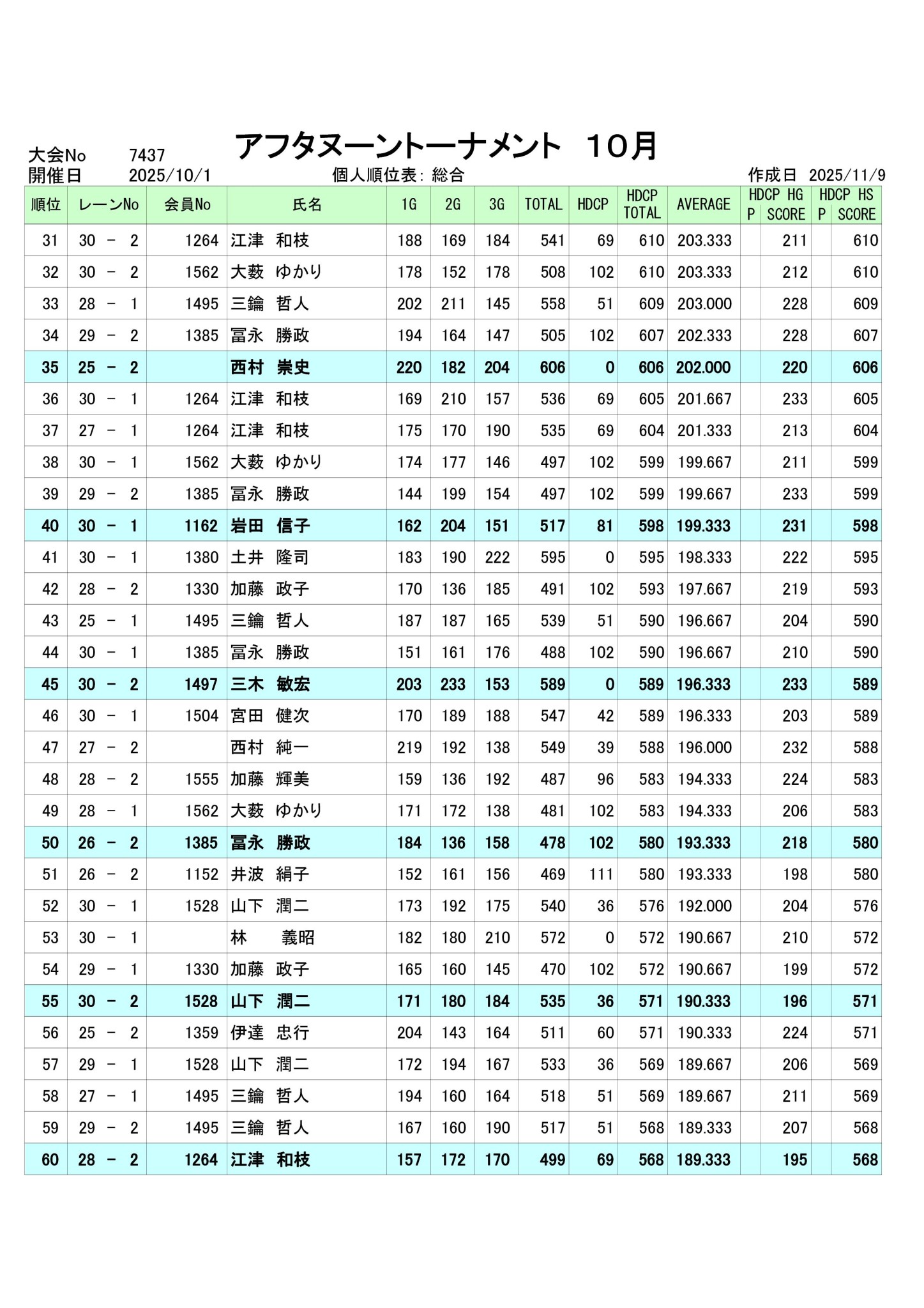 2025年10月度アフタヌーントーナメント