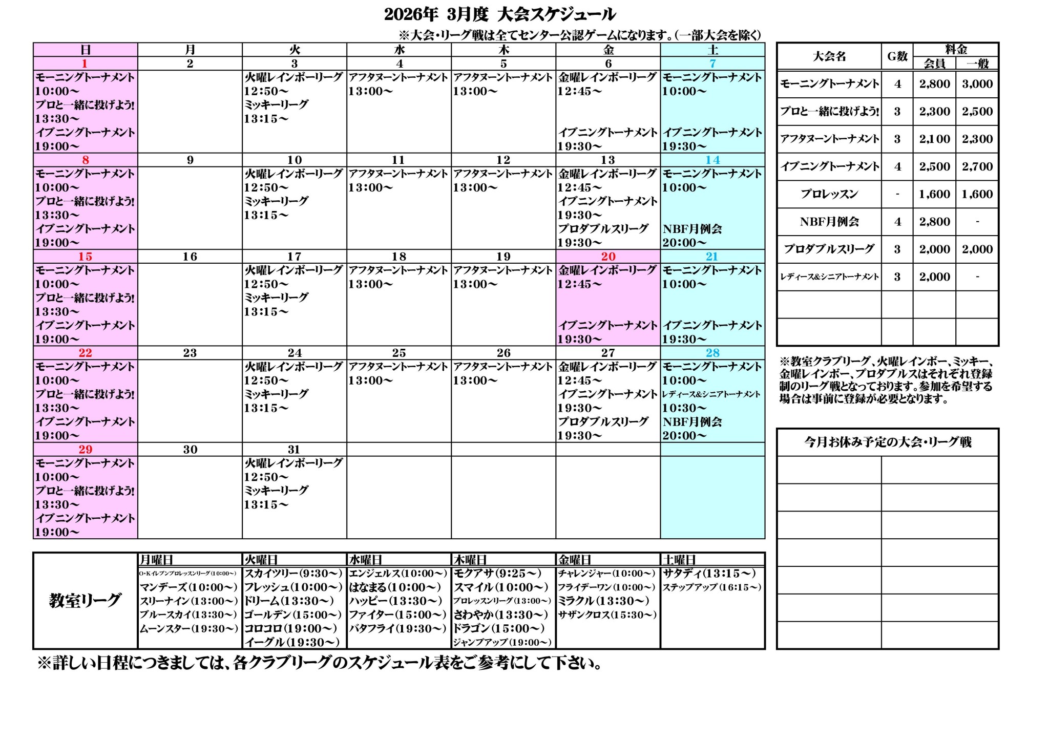 2026年1月度アフタヌーントーナメント