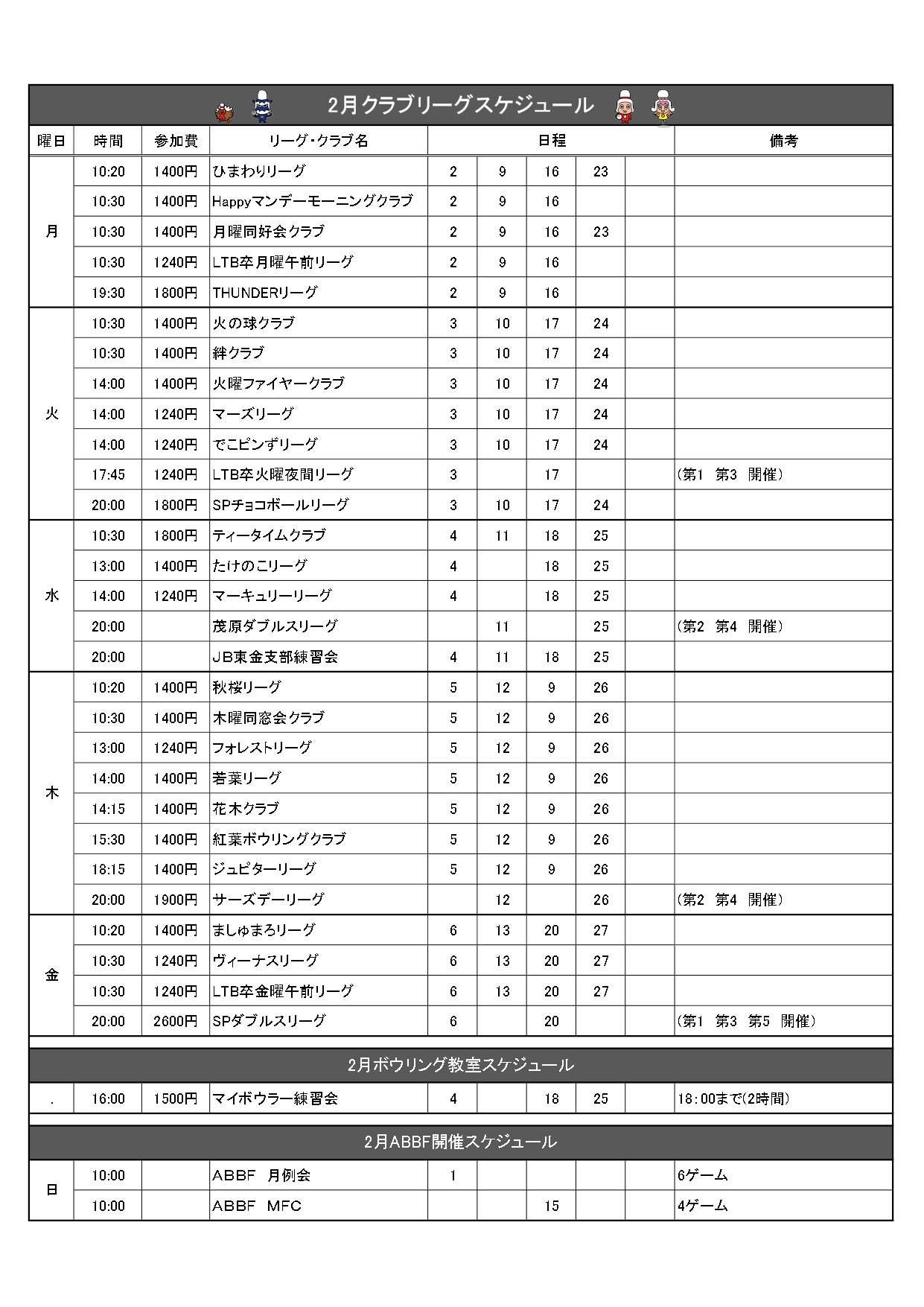 教室・大会スケジュール〜あすみが丘ボウリングセンター