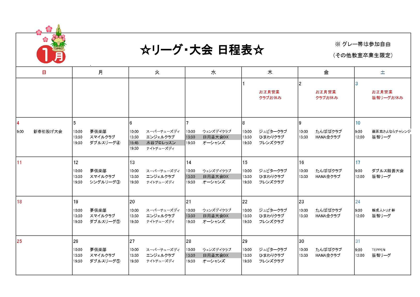 教室・大会スケジュール〜ボウリング王国スポルト今福店