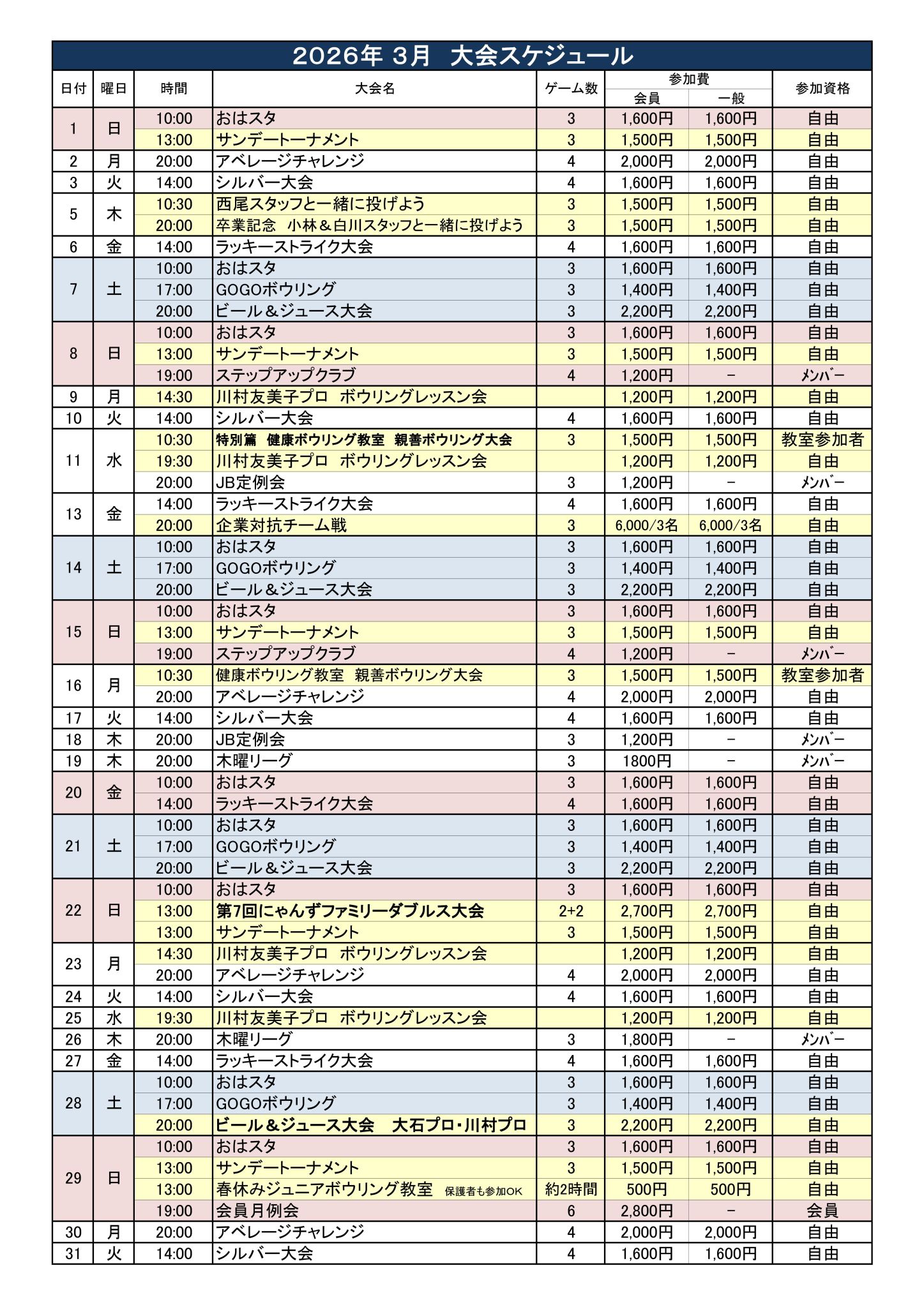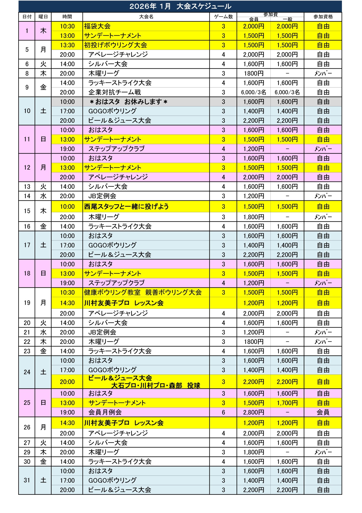 教室・大会スケジュール〜土岐グランドボウル
